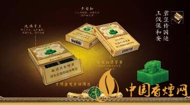 取“玉溪(雙中支翡翠)”煙盒靜觀,其龍紋環(huán)繞,王者其色,注定生而不凡,尊貴無上。煙盒正面圖案是清乾隆御寶交龍鈕翡翠玉璽,正上方的“翡翠”兩個字用翡翠色渲染,質感十足,一脈相承。煙盒正面中間,印有“比德于玉”四字,傳遞著“君子高義,玉有五德,比德于玉,溫潤而澤”的文化理念。