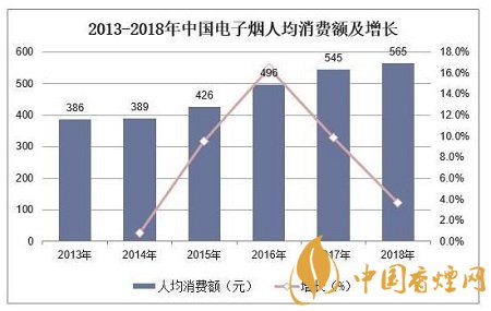 從電子煙人均消費(fèi)額來(lái)看,據(jù)統(tǒng)計(jì),截至到2018年,中國(guó)電子煙人均消費(fèi)額為565元,同比增長(zhǎng)3.7%。