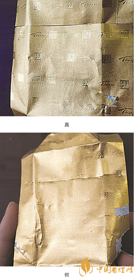 5、錫箔紙。在一定側光角度下,真煙錫箔紙印刷清晰,有光澤,凹凸感強;假煙則字跡不清,色澤暗淡,沒有立體感。