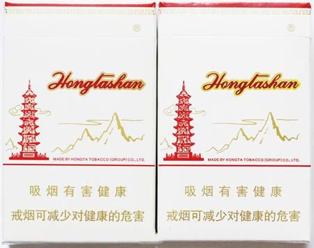 真煙選用的是白卡紙,采用凹版印刷工藝,故”經(jīng)典“二字整體筆畫較粗;商標(biāo)”紅塔山“字樣手摸上去沒有凹凸感,而且中間的”塔“字,下方口字上一橫沒有缺口。另外logo紅塔圖案左側(cè)的上下兩朵云,距離塔身較近。而假煙商標(biāo)紙除了選用的是劣質(zhì)紙張外,印刷工藝上多是采用高清掃描防印,故假煙多呈現(xiàn)以下特征:”經(jīng)典“二字筆畫較細(xì);商標(biāo)”紅塔上“字樣摸上去有凹凸感;而且”塔“字下方口字上一橫有小缺口;logo”紅塔“左側(cè)的兩朵云距離塔身較遠(yuǎn)。