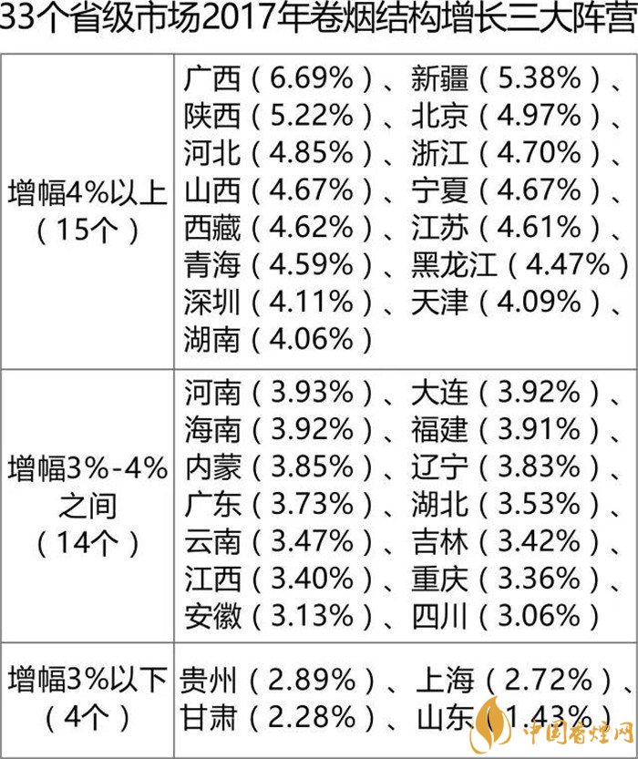 結(jié)構(gòu)升級(jí)既是行業(yè)所愿,也是大勢(shì)所趨。其中,有幾個(gè)值得進(jìn)一步觀察的現(xiàn)象:一是單箱值邁入3萬元的省級(jí)市場已達(dá)15個(gè),總體以華東、華南、西南兩大區(qū)域?yàn)橹?北方只有北京市)。二是一類煙成為結(jié)構(gòu)提升的主動(dòng)力,全年一類卷煙銷量1058.60萬箱,同比增加70.35萬箱,增長7.11%。三是有8個(gè)省級(jí)市場單箱結(jié)構(gòu)同比增加值沒有達(dá)到1000元,分別是山東、甘肅、吉林、貴州、遼寧、四川、內(nèi)蒙和黑龍江,其中,山東煙民消費(fèi)最不給力,僅增加360元。四是結(jié)構(gòu)最高的仍然是浙江,單箱值達(dá)到43663元,最低的仍然是河北,單箱值為22375元,相差接近一倍。