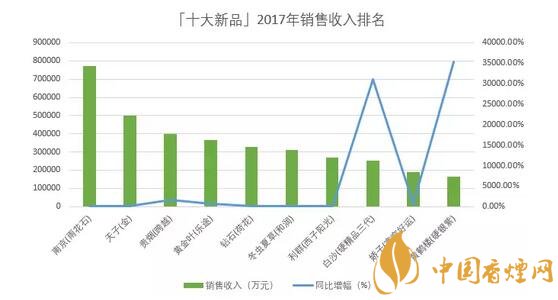 以銷售收入評價,「十大新品」2017年合計銷售收入達到354.3億元,同比增加139.3億元,增長64.7%,平均單箱批發(fā)均價達到6.2萬元;銷售收入最高的「南京(雨花石)」達到77.4億元,最少的「黃鶴樓(硬銀紫)」只有16.3億元;單箱批發(fā)均價最高的「南京(雨花石)」達到13.25萬元,最低的「黃鶴樓(硬銀紫)」只有3.25萬元。