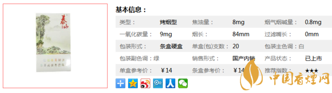 泰山青秀煙長(zhǎng)84mm,屬于低焦油系列香煙,煙氣較淡,入口輕柔,煙勁挺小的 外觀很大氣 到喉嚨里后也很順暢 在這個(gè)價(jià)位里是挺不錯(cuò)的一款煙了。下面我們一起來(lái)看泰山青秀的參數(shù)信息:焦油量:8mg 煙堿量:0.8mg 一氧化碳量:9mg