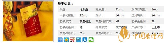 | 類型 :烤煙型 | 焦油量 :11mg | 煙氣煙堿量 :1mg | 一氧化碳量 :12mg |