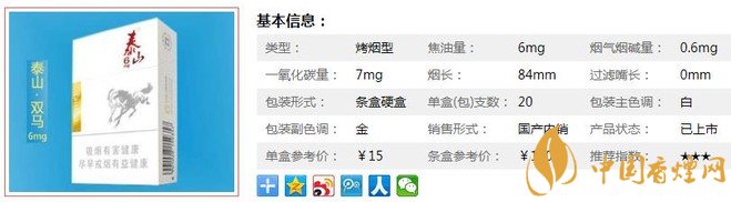 泰山6mg比中南海醇厚,比8MG的那款柔,不卡嗓子,生煙味也不濃,焦油量低,又短一口,對身體危害小,值得入手。經(jīng)香煙網(wǎng)小編市場調(diào)查泰山6mg售價(jià)為15元/包。