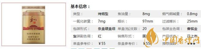 | 類(lèi)型 :烤煙型 | 焦油量 :8mg | 煙氣煙堿量 :0.8mg | 一氧化碳量 :7mg |