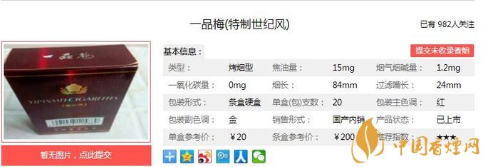 品梅世紀(jì)風(fēng)煙氣甜韻圓潤、柔綿舒適、入喉清新豐滿、順暢、醇綿、飽滿、輕靈,此煙還是很不錯的,口感著實(shí)純正飽滿,醇厚干凈。經(jīng)香煙網(wǎng)小編市場調(diào)查一品梅世紀(jì)風(fēng)售價為20元/包。