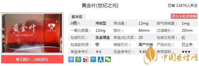口味傳承并發(fā)揚(yáng)黃金葉品牌的風(fēng)格特點(diǎn),精選優(yōu)質(zhì)原生煙葉,3年巖洞自然純化,以本香造就一流品質(zhì)。進(jìn)一步提升卷煙的吸食品質(zhì),煙氣細(xì)膩和順,煙香自然優(yōu)雅,滿足感較強(qiáng),勁頭適中,入口和順,香氣飽滿,綿柔舒適,回味悠長,耐抽性好。經(jīng)香煙網(wǎng)小編市場調(diào)查黃金葉(世紀(jì)之光)售價(jià)為4元/包。