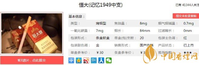 以上便是香煙網(wǎng)小編為大家介紹的關(guān)于恒大記憶1949原始香煙包裝,價(jià)格還是當(dāng)年的30元一包!的相關(guān)信息,大家看完之后是不是對(duì)于這款香煙更加了解呢,想要了解更多內(nèi)容歡迎點(diǎn)擊:恒大煙魁1903口感測(cè)評(píng) 百元大佬煙色香味俱全