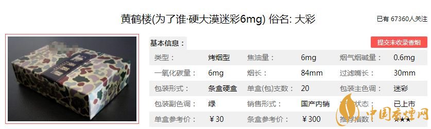 外觀看起來很不錯,軍旅迷彩風,大氣養(yǎng)眼。符合黃鶴樓綿軟的特點,不過稍微有點辣喉,黃鶴樓大彩的焦油含量會更高一些,