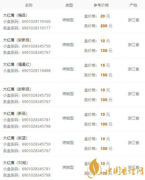以上就是香煙網為您提供的2020大紅鷹香煙價格表和圖片信息,想要了解更多的相關知識,請來關注香煙網!