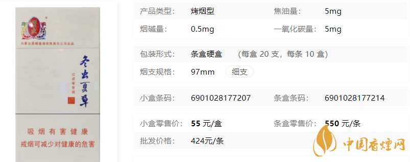 在了解了2020冬蟲夏草(和潤)香煙多少錢一包之后,為了大家能更詳見的了解此煙,小編特意將冬蟲夏草(和潤)香煙核心參數(shù)進(jìn)行了整理,以便于對(duì)它進(jìn)行更深入的了解。