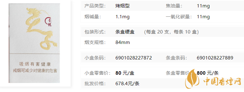 | 類型 :烤煙型 | 焦油量 :11mg | 煙氣煙堿量 :1.1mg | 一氧化碳量 :11mg |