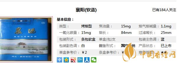 襄陽(yáng)牌香煙參數(shù)信息