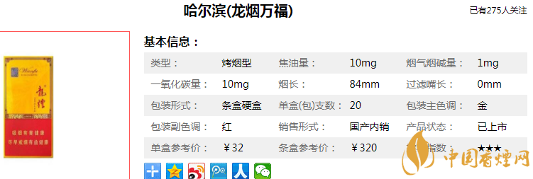 這就是"龍煙家族"幾個快樂的小兄弟,滿足龍江煙草消費者的各種需求。以上就是香煙網(wǎng)小編為大家整理介紹的關(guān)于哈爾濱龍煙多少錢一包/條以及哈爾濱龍煙(系列)價格表相關(guān)信息,更多了解點擊:東北特產(chǎn)煙有什么 東北人喜歡抽什么煙(不止東三省代表煙)