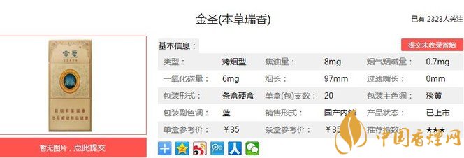 瑞香細(xì)支的煙支修長(zhǎng),和主流細(xì)支煙一樣,煙嘴口徑5mm。瑞香細(xì)支主原料以世界“黃金煙田”津巴布韋煙葉和云南煙葉為主,輔以江西生態(tài)種植區(qū)金圣基地?zé)熑~,并在煙葉中融入經(jīng)密練的天然名貴植物。經(jīng)香煙網(wǎng)小編市場(chǎng)調(diào)查金圣本草瑞香售價(jià)為35元/包。