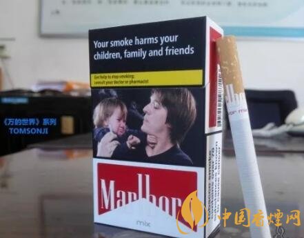 煙盒左右側(cè)面各印有黑框樣式的警示語(yǔ)句,也是后期歐盟版本萬(wàn)寶路的煙盒包裝特點(diǎn)。