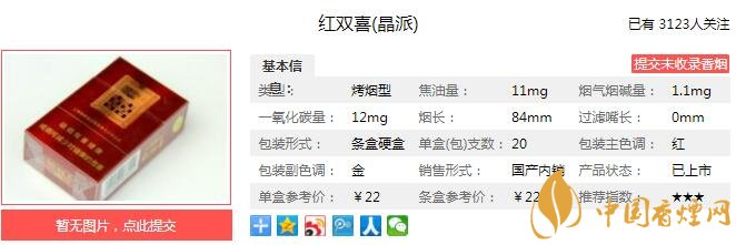 南京炫赫門煙支長(zhǎng)84mm,晶心選材、晶致配方、晶湛工藝鑄就了晶派內(nèi)在品質(zhì)的卓越不凡。城市氣派、晶英氣派、喜慶氣派彰顯了晶派外在包裝的魅力無窮。下面我們一起來看紅雙喜晶派的參數(shù)信息:焦油量:11mg 煙堿量:1.1mg 一氧化碳量:12mg