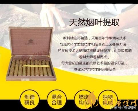 這是中英合資品牌。作為荷蘭著名老牌雪茄品牌的順百利,優(yōu)選拉丁美洲和印尼的煙葉,沿襲荷蘭雪茄傳統(tǒng)工藝,低溫自然陳化兩年以上,從煙葉到成品經(jīng)過4次冷藏221道工序精制而成。原木外盒,單支包裹雪松木片和鋁管。主要包裝材料鋁管、絲紙、雪松分別從意大利、荷蘭、美國進(jìn)口。