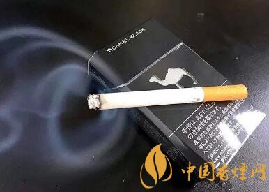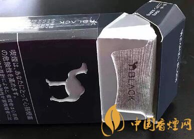 煙盒正面的圖案非常簡(jiǎn)單,大面積黑色的基調(diào),中間一只鏤空的駱駝。煙盒下方,是日文的警示語(yǔ)。
