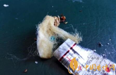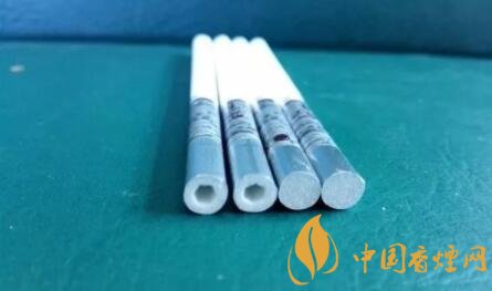 剪開鏤空樣式的過濾嘴,會發(fā)現(xiàn)有一層薄薄的黃色紙張,附著于過濾嘴紙張之上。鏤空過濾嘴的長度,約為6mm。