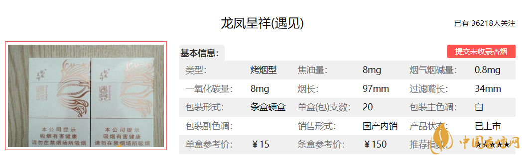 以上就是香煙網(wǎng)小編為大家整理介紹的龍鳳呈祥遇見香煙的價(jià)格參數(shù)以及煙民點(diǎn)評(píng),希望為大家提供幫助。想了解更多香煙信息,請(qǐng)關(guān)注香煙網(wǎng)!