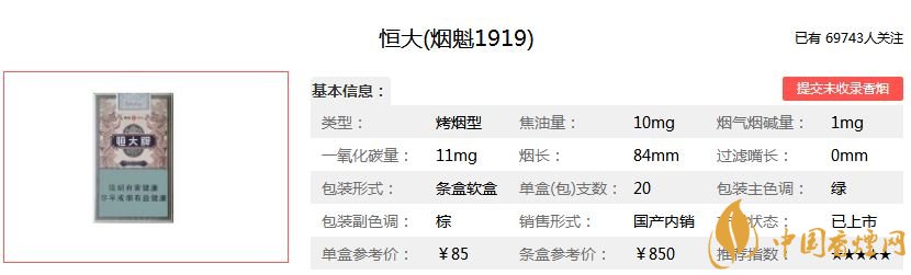 恒大香煙創(chuàng)牌于1947,距今已有70多年的歷史了。恒大牌香煙曾被多次評為名牌產(chǎn)品。今天為大家介紹一款恒大煙魁1919香煙。煙魁1919多少錢一包?下面小編就帶大家了解一下恒大煙魁1919香煙的價格以及辨別真假的方法。