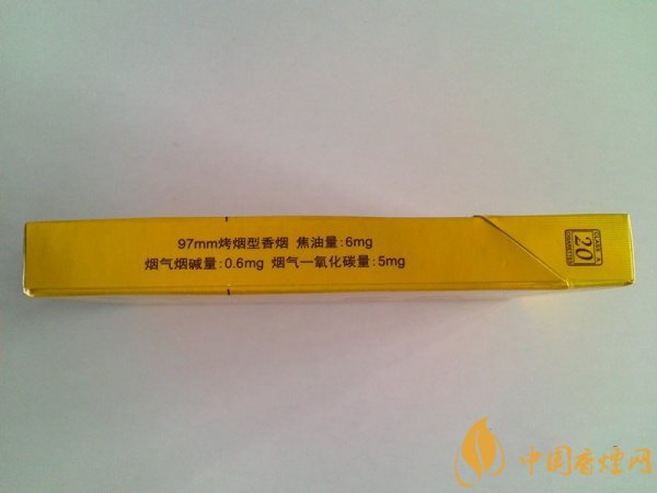 右側(cè)為詳細(xì)的商品信息,97mm烤煙型香煙,三項理化指標(biāo)相對均衡:焦油量6mg 煙氣煙堿量0.6mg 煙氣一氧化碳量5mg。
