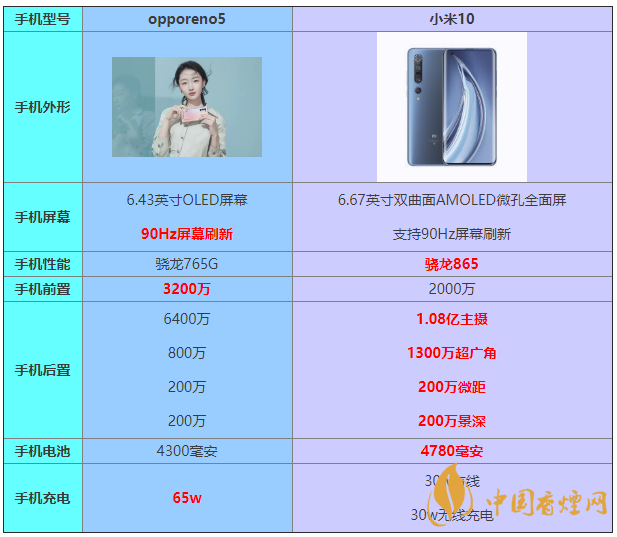 小結:在手機的續(xù)航方面是小米10更好,為用戶帶來最多的電池容量,在手機的充電速度方面是opporeno5最優(yōu),為用戶帶來65w的充電速度
