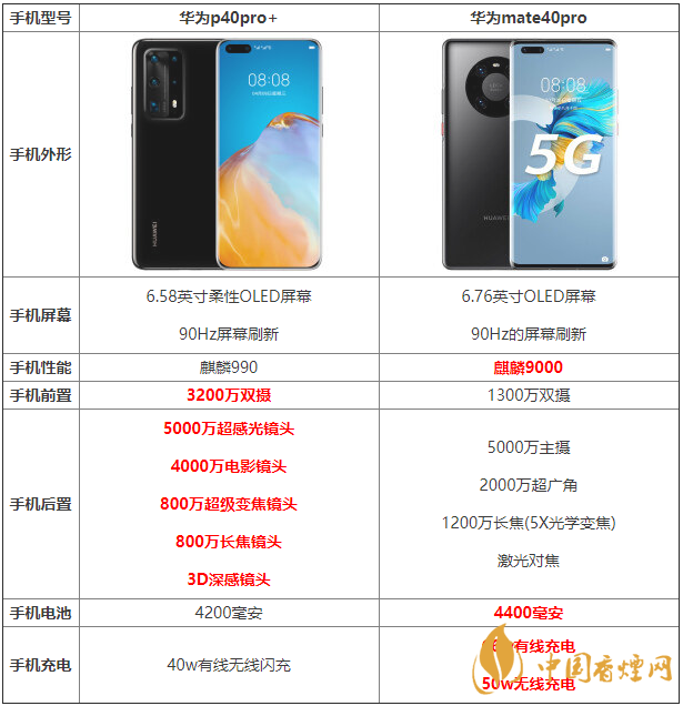 華為p40pro+:4200毫安電池,支持40w有線和無線充電