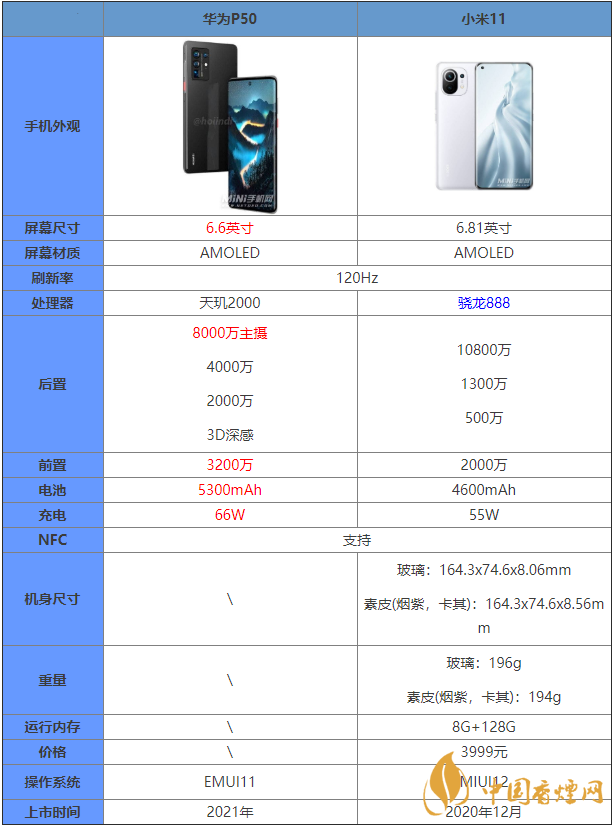 通過上面的介紹,相信大家對(duì)華為P50和小米11有什么區(qū)別以及哪款手機(jī)更值得入手都有了一定了解了,希望對(duì)大家在選擇時(shí)有所幫助。了解更多實(shí)用手機(jī)相關(guān)咨詢,請(qǐng)關(guān)注香煙網(wǎng)。