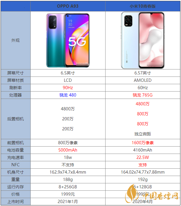OPPOA93和小米10青春版都是價(jià)位相同的兩款手機(jī),不少小伙伴都不知道該如何選擇,那么OPPOA93和小米10有什么區(qū)別?哪款手機(jī)更值得入手?下面香煙網(wǎng)小編將對(duì)OPPOA93和小米10青春版參數(shù)對(duì)比進(jìn)行介紹,感興趣的朋友一起來看看吧!