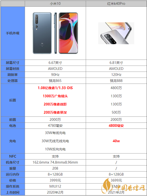 通過上面的介紹,相信大家對紅米k40pro和小米10有什么區(qū)別以及參數(shù)配置對比都有了一定了解了,希望對大家在選擇時有所幫助。了解更多實用手機(jī)相關(guān)咨詢,請關(guān)注香煙網(wǎng)。