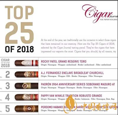 雪茄愛好者看過來,2018年雪茄排行榜來了!2018年排名前十的雪茄有哪些呢?《cigarjournal》組織了品鑒小組評選出2018年前25名雪茄,品鑒小組由來自世界各地的70名雪茄愛好者和專家組成,涵蓋各個年齡層的女性和男性。下面就由香煙網(wǎng)小編帶大家一起來了解一下2018年雪茄排行榜的相關(guān)信息。