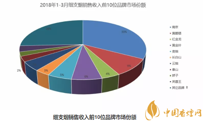 3、如圖所示2018細支煙排行榜(銷售收入)圖:在第一季度中國細煙排行中1-3月細支煙銷售收入前十位品牌一目了然,分別是:第一名南京、第二名黃鶴樓、第三名黃金龍、第四名:黃金葉、第五名:貴煙、第六名:長白山、第七名:云煙、第八名:泰山、第九名:嬌子第十名:芙蓉王