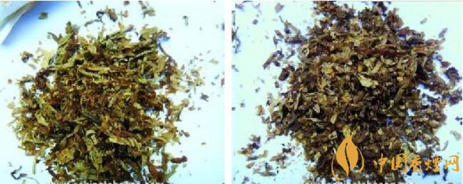 真煙煙絲呈現(xiàn)出橙黃色,切絲寬度均勻且有油潤性;假煙煙絲呈現(xiàn)出淺黃色,切絲寬度不一,含末率較高,與真品煙絲成色比對存在明顯差異。