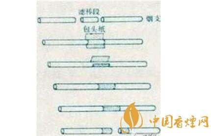 空腔濾嘴:空腔濾嘴是屬于二元復合濾嘴的一種,二元復合濾嘴通常是一段濾材為醋酸纖維,另一段為皺紋紙或生產(chǎn)過程中摻入添加劑(如活性炭)的醋酸纖維??涨粸V嘴是屬于后端為皺紋紙的那種,因為后端為中空,為了不使其塌陷,而醋酸纖維太軟,所以利用皺紋紙做成中空型。因其有一段規(guī)則的空腔, 形成一個低壓通道,抽吸時吸阻小, 能夠顯著提高對煙氣中焦油的過濾效率,有效地減少焦油和一氧化碳的釋放量。