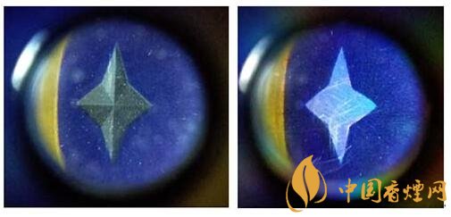 (3)真品卷煙商標(biāo)LOGO處“星”,側(cè)光觀察立體感強,中間凸邊緣平,呈錐形,棱角明顯。