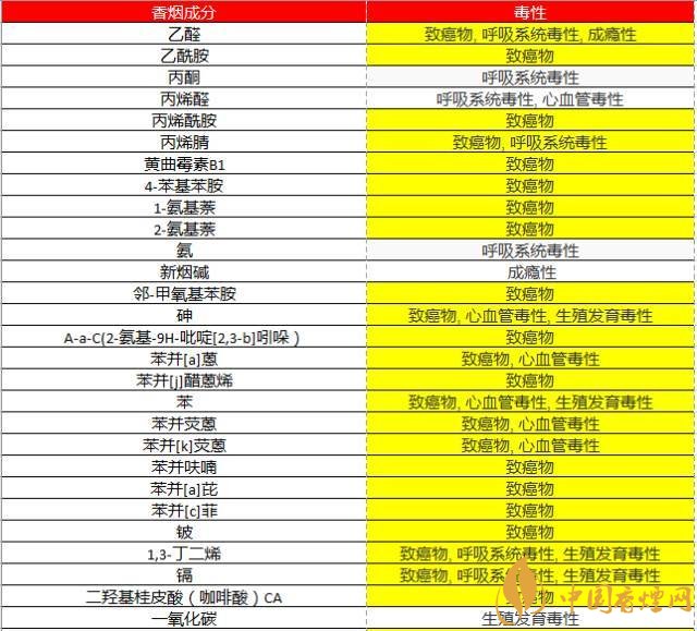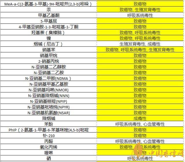 事實(shí)上,香煙里有超過(guò)7000種化學(xué)物質(zhì),其中93種明確有毒物質(zhì),78種是明確致癌物,78種?。ㄒ?jiàn)下表)