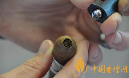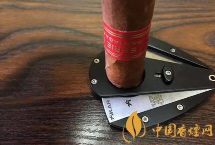 可以有一個方法是將雪茄剪平放到桌面,再把雪茄倒立放到切口里面,這樣就能夠剪出水平的切口了。