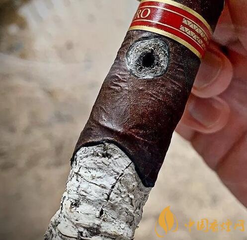 穿孔是雪茄中間燃燒過(guò)快,中間燃點(diǎn)進(jìn)入雪茄內(nèi)部,超過(guò)周?chē)键c(diǎn)之后又從另外一個(gè)地方竄出。