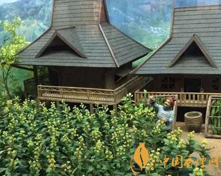 在中國(guó)煙草博物館農(nóng)業(yè)館中,有一個(gè)以云南吊腳樓為背景設(shè)計(jì)的雕塑場(chǎng)景,展示了香料煙在當(dāng)?shù)胤N植(如圖)、采摘、曬制、分級(jí)加工的過(guò)程。