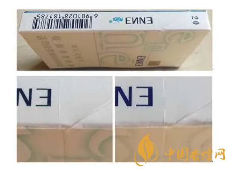 (4)真品卷煙“enne”小寫字母筆畫立體感強(qiáng)。假冒卷煙小寫字母筆畫無(wú)立體感。