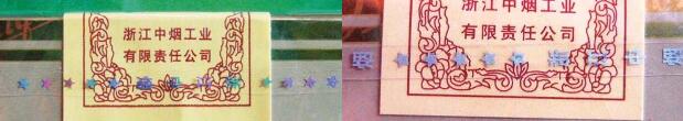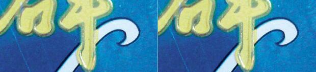 3.看小盒商標(biāo)印刷細(xì)節(jié),真煙的印刷方式為凹印、膠印相結(jié)合,“群”字下方黃色筆劃部分邊緣呈鋸齒狀,而黑色筆劃邊緣則是光滑的;而假煙則是采用膠印方式印刷,字體筆劃邊緣都是光滑的。