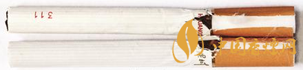 煙支過(guò)濾嘴及煙絲差異對(duì)比:真品煙支采用單一醋纖濾嘴,長(zhǎng)度為25mm,煙絲切絲寬度均勻,煙絲疏松、光澤油潤(rùn)性好、含碎末少。煙絲結(jié)構(gòu)為葉絲、膨脹葉絲、膨脹梗絲和再造煙葉;假煙煙支過(guò)濾嘴較短,長(zhǎng)度約為21mm,制絲工藝粗糙,光澤油潤(rùn)性差、煙絲中含碎末較多,大量梗絲未經(jīng)過(guò)膨脹處理,一般無(wú)膨脹葉絲和再造煙葉,與真品特征存在明顯差異。