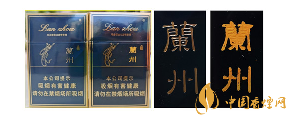 假冒卷煙:該款假冒卷煙“蘭州字體燙金工藝差,字體筆畫(huà)明顯有粘連,字體整體模糊。